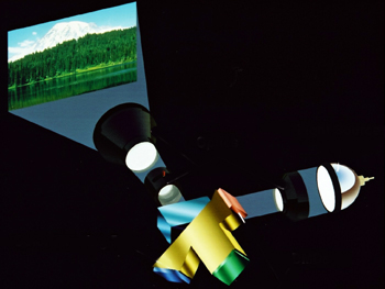 A színbontó/színösszegző prizmák szűrőket használnak, amelyek a felületükön vannak elhelyezve, ezek állítják elő a prizma által szétbontott tisztán vörös, zöld és kék összetevőket. A három DMD megfelelő állásban lévő tükreiről visszavert fénysugarak a prizmákon keresztül újra egyesülnek. Az összetevőkből egyesített fény ezután áthalad a TIR prizmán és bejut a vetítőobjektívbe.