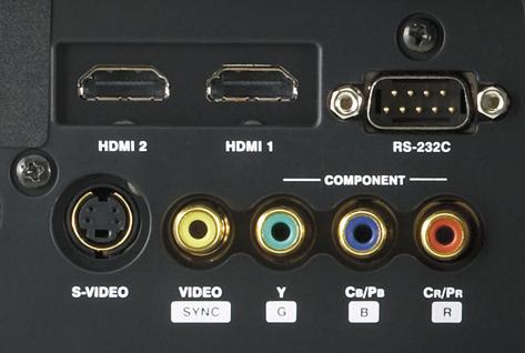 A vetítő hátlapján két 1.2-es verziojú, PC és HDTV kompatibilis HDMI, egy komponens, egy kompozit (az utóbbiak RGBS SCART jel fogadására is alkalmasak), és egy S-Video bemenetet, valamint egy RS-232 csatlakozót találunk. A DLA-HD1 minden ismert videojelet felismer és kezel köztük a 1080p60/50/24 formátumokat is.