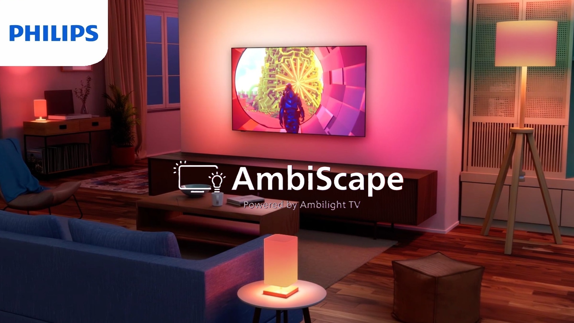 A kiadott sajtóközlemény szerint: „Most a TP Vision a fogyasztói véleményeket figyelembe véve kiterjeszti az Ambilight egyedi vonzerejét az új AmbiScape funkció bevezetésével, ami lehetővé teszi, hogy bizonyos Ambilight képes Philips TV-k akár négy okosizzóhoz csatlakozhassanak és vezéreljék azokat – kezdetben olyan márkáktól, mint a Wiz, a NanoLeaf, a Philips Hue és az Ikea –, hogy az immerzív élményt még inkább kiterjesszék a tévézésre szolgáló szobára.”