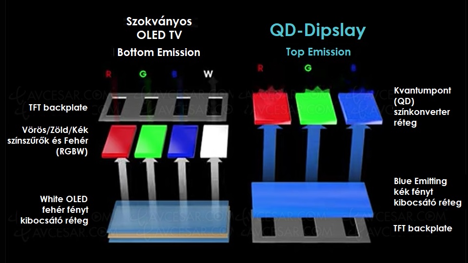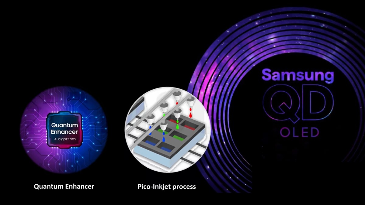 Az először 2022-ben megjelent QD-OLED TV-k Samsung Display által gyártott paneljei 2023-ban az IntelliSense AI fejlett optimalizáló algoritmust és az OLED HyperEfficient EL anyagot alkalmazva – már 195 centis (77”) méretben is előállítva – jobb RGB színfényességet és 2.000 nit (cd/m2) maximális fénysűrűséget produkáltak.